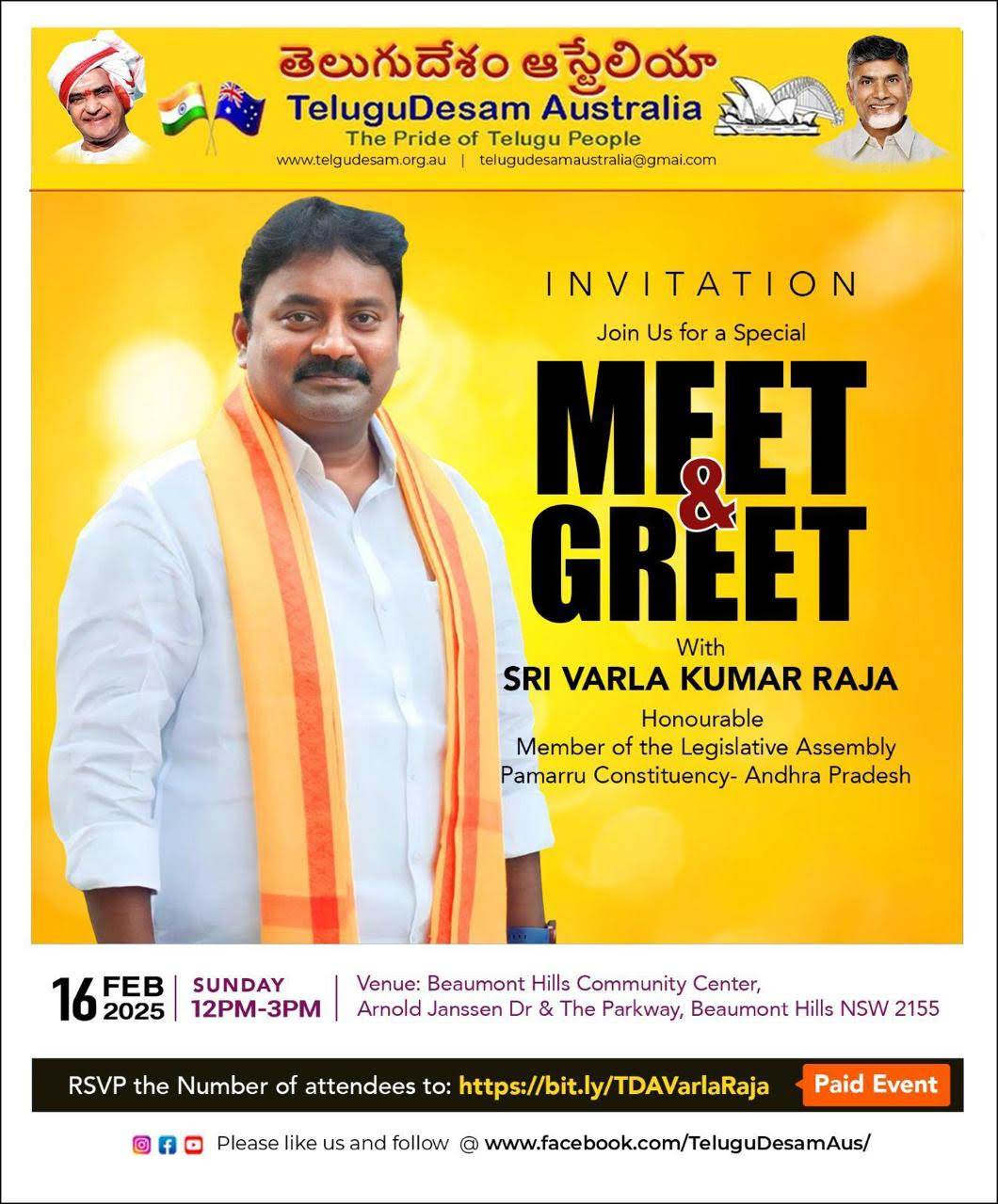 Telugu Desam Australia – Meet & Greet – Sri Varla Kumar Raja – MLA pamarru – AP